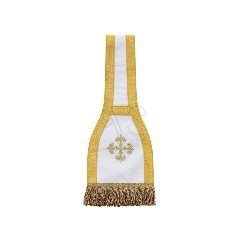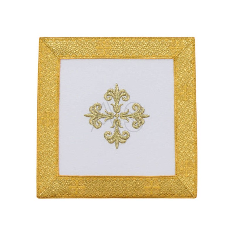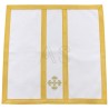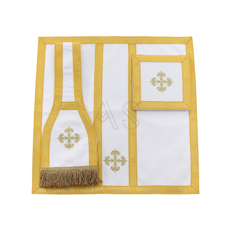 Acompanha uma estola, manípulo, bolsa corporal e véu de cálice.