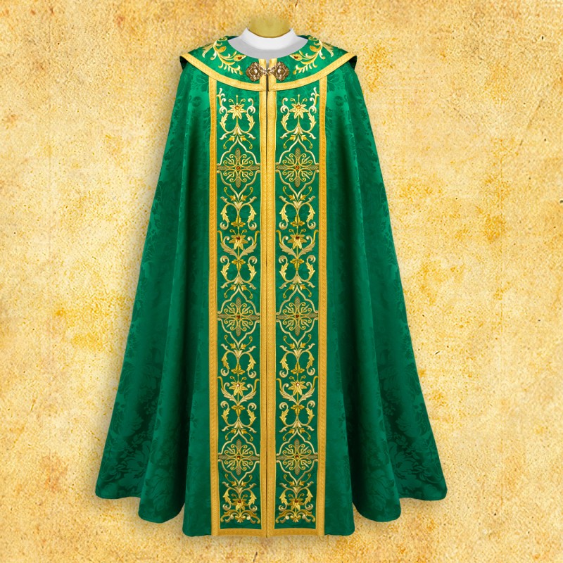 Capa de asperge gótica bordada com fio dourado, e decorado à mão com pedras de altíssima qualidade.