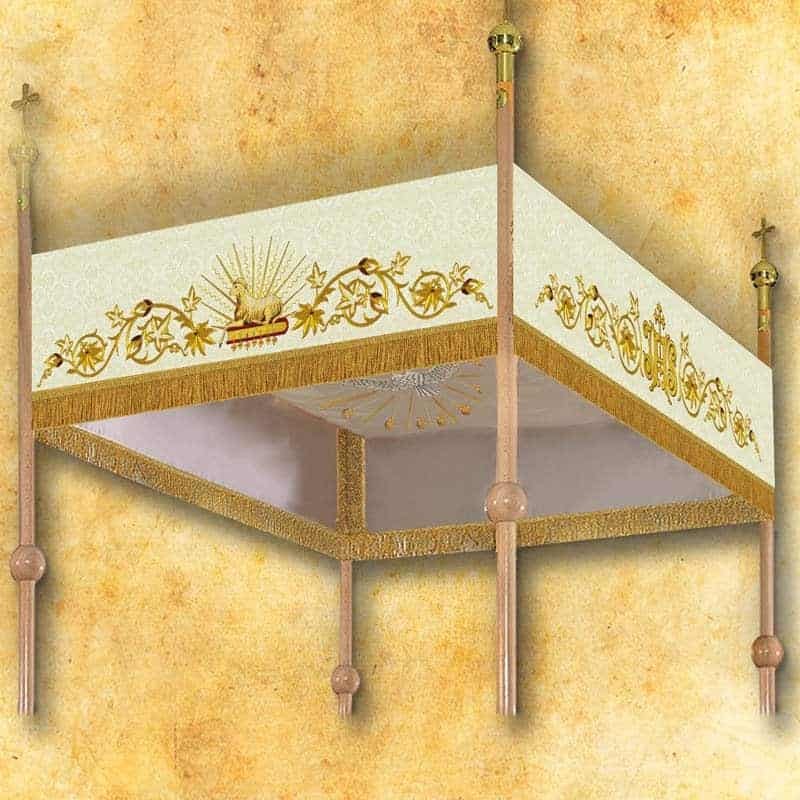 Pálio para procissão do Santíssimo Sacramento bordado em alto relevo de altíssima qualidade.
