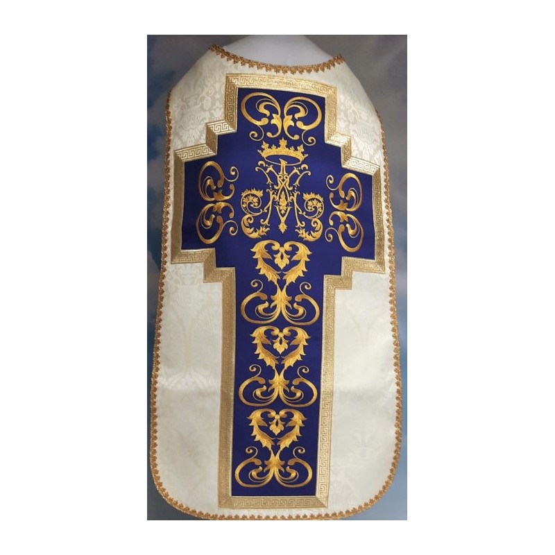 Acompanha uma estola, manípulo, véu de cálice e bolsa corporal.