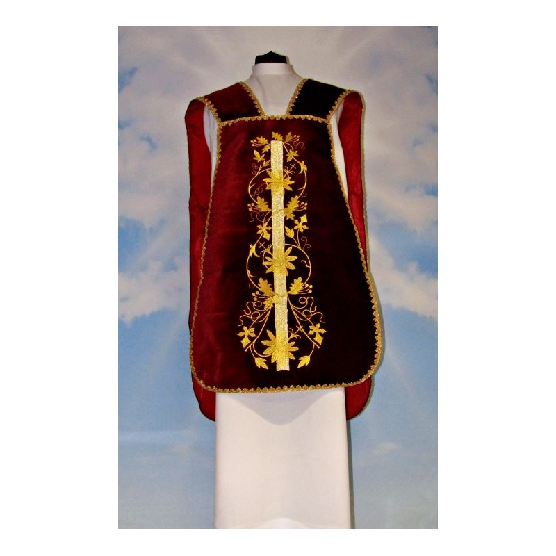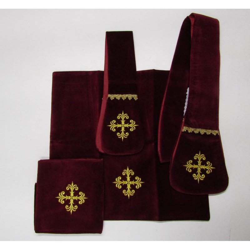 Acompanha uma estola, manípulo, véu de cálice e bolsa corporal.