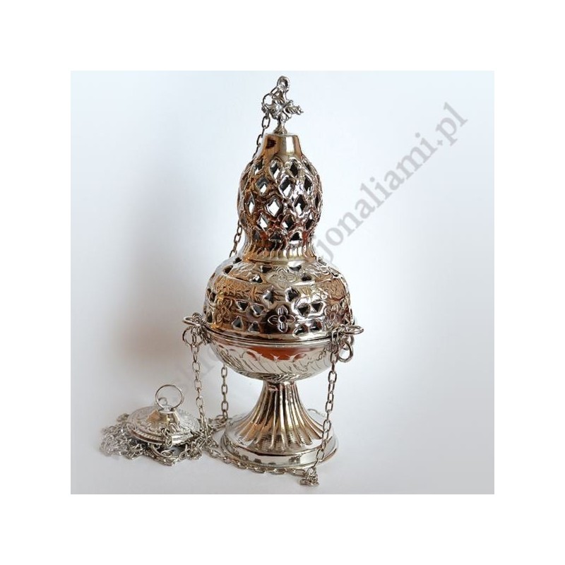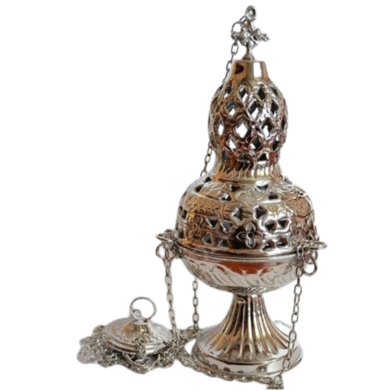 Turíbulo em chapa de latão banhado a prata. Produto italiano de altíssima qualidade.