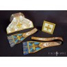 Essa casula acompanha uma estola, manípulo, bolsa corporal e véu de cálice.