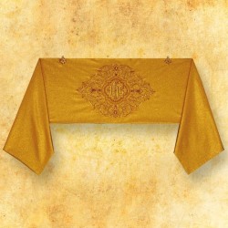 Acompanha uma estola, manipulo, bolsa corporal e véu de cálice.