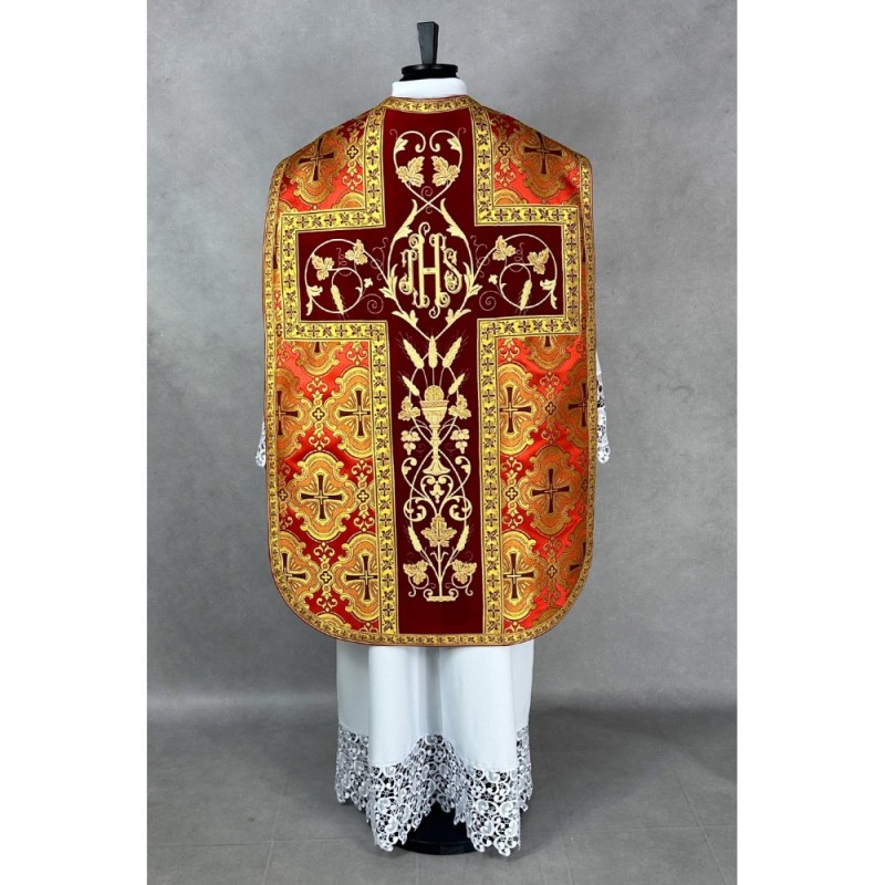 Casula romana bordada na frente e atrás em alto relevo de altíssima qualidade.