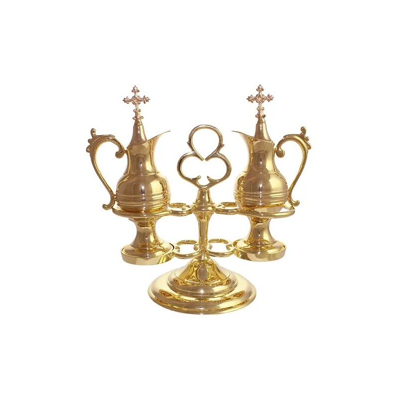 Essa galheta numa bandeja de vidro decorado, feita de materiais duráveis, é um produto italiano de altíssima qualidade usada na Igreja Católica para armazenar e transportar de forma protegida e segura elementos sacramentais. Ao adquirir esse produto a Igreja demonstra o seu cuidado pastoral, pois representa o simbolismo e a reverência de dar continuidade litúrgica na tradição da Igreja. Veja os outros modelos.