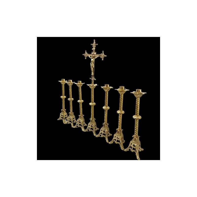 Conjunto de altar de castiçais com cruz, modelo barroco, produto italiano de altíssima qualidade.