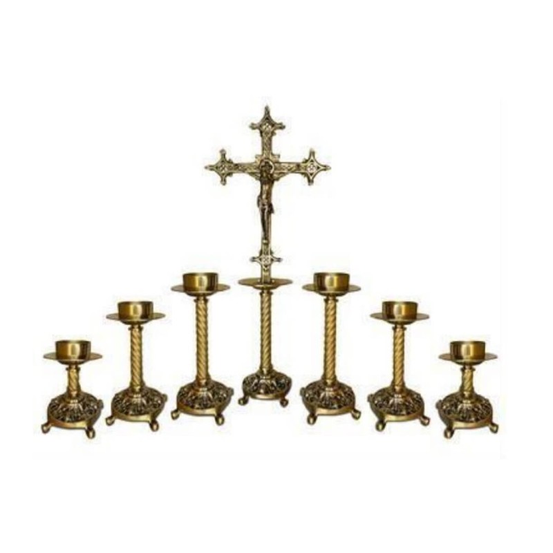Conjunto de altar de castiçais com cruz, modelo barroco, produto italiano de altíssima qualidade.