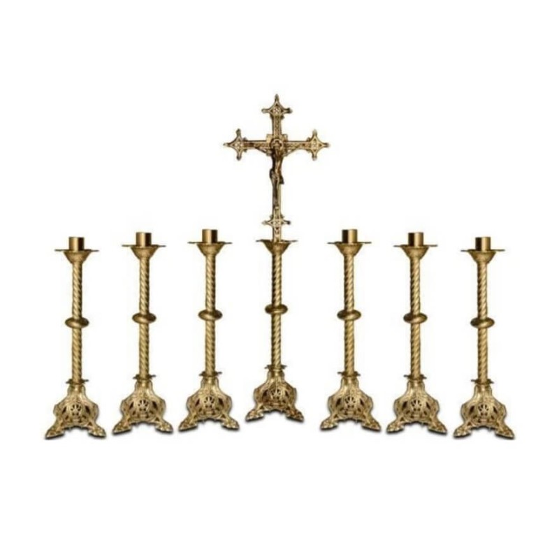 Conjunto de altar de castiçais com cruz, modelo barroco, produto italiano de altíssima qualidade.