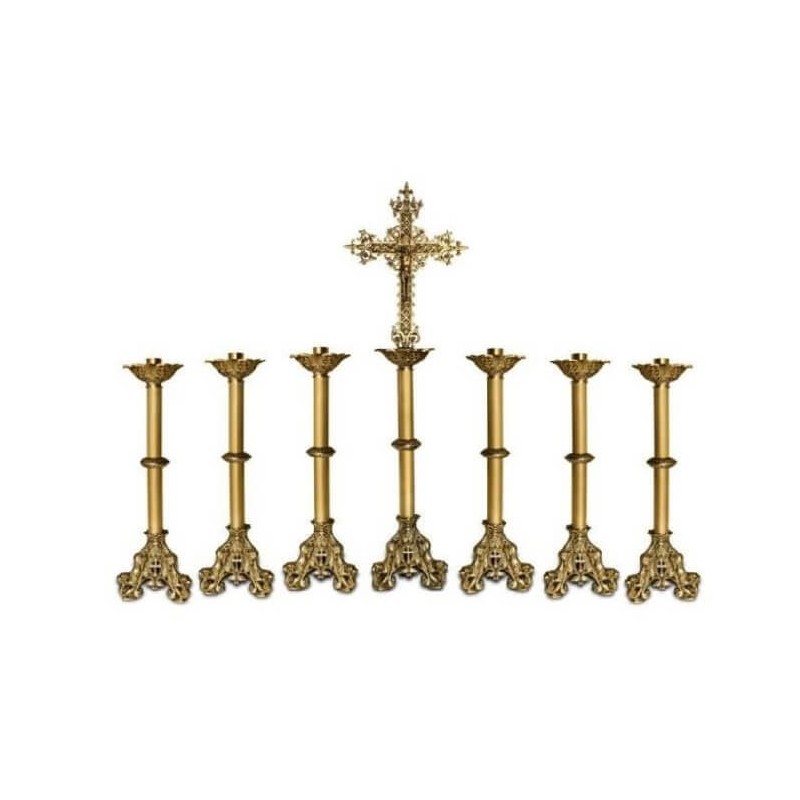 Conjunto de altar de castiçais com cruz, modelo barroco, produto italiano de altíssima qualidade.