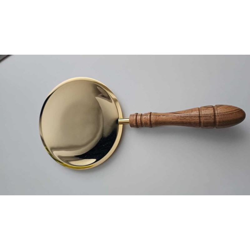 Patena para distribuição da Sagrada Eucaristia feita de bronze dourada ou niquelada de altíssima qualidade.