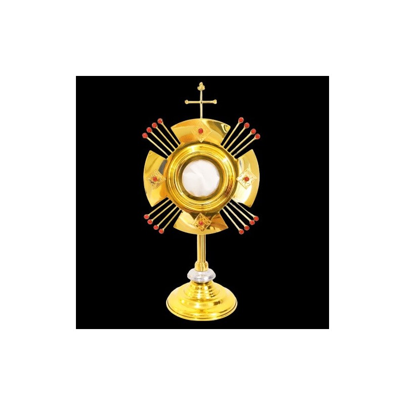Ostensório deslumbrante, com pedras de rubis, produto importado, de altíssima qualidade, com ornamentação prateada que realçam a sua beleza. Que acrescenta sofisticação e valor ao produto. Ideal para celebrações importantes e para homenagear o Santíssimo Sacramento. Adquira já o seu e proporcione um momento de adoração profundo. Adquira-o agora na nossa loja e veja os outros modelos.