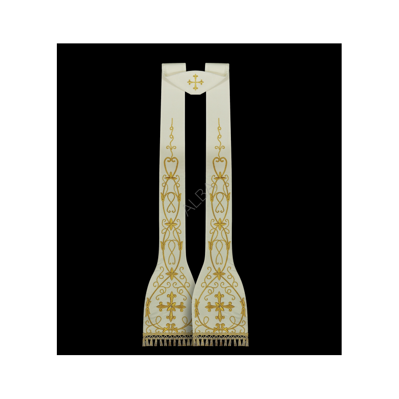 Estola romana bordada em alto relevo com linha dourada de altíssima qualidade.