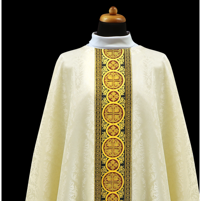 Casula semigótica bordada na frente e atrás com listra de tecido de veludo e